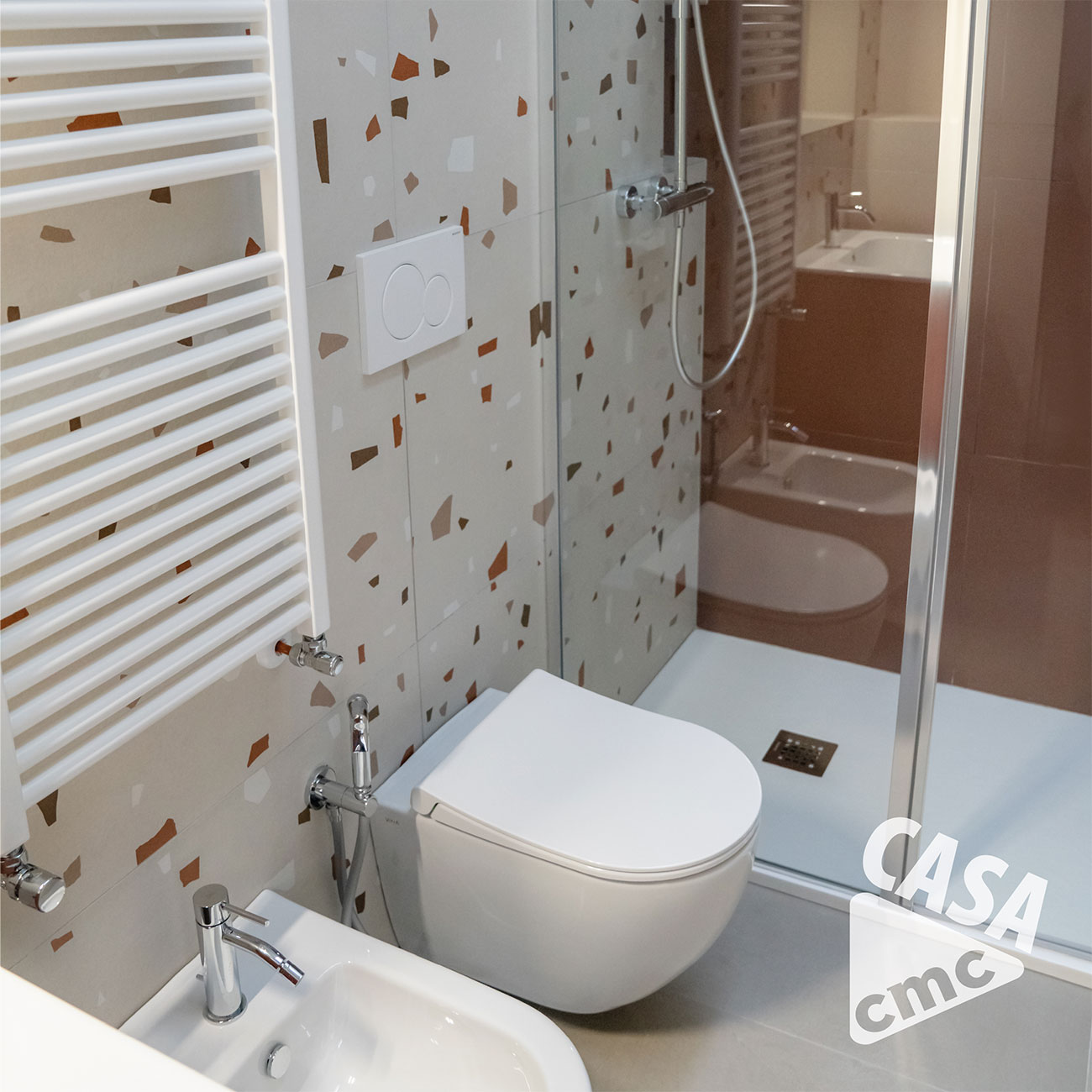 Leggerezza e design, le parole d’ordine nel nuovo progetto CASA CMC. L’effetto marmo colorato dona carattere a tutto l’ambiente bagno e l’effetto resina delle superfici è in perfetta sintonia con le nuove tendenze dell’abitare contemporaneo.